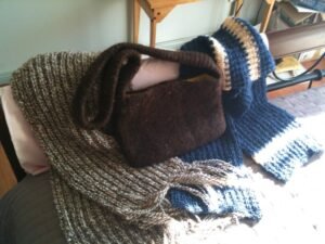 Handspun Felted Bag and Scarves
