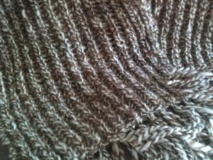 Dad’s scarf I knitted in Fisherman’s Rib, again giving a good thick texture and light in weight