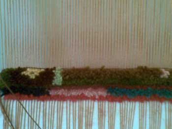 The first four rows were ‘practice knotting’ getting used to the technique, using different types of wool.